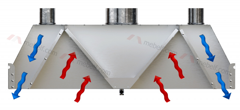 - Зонт вытяжной нержавеющий островной ЗВН04 – зонт островной выполнен из нержавеющей стали AISI430 толщиной 0,7 мм и оснащен встроенными нержавеющими жироуловителями для удаления жира. Имеет 1 врезку для оттока воздуха (размер врезки по согласованию)